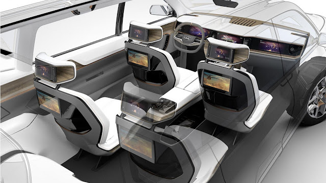 Here, there’s seating for six, all the better for enjoying the Yuntu’s many, many infotainment screens and its smart wooden interior. It looks like a very nice place to be. A production version, be it the Grand Wagoneer or not, will almost certainly have seven seats. And no doubt conventional doors at the back, and a bit less wood…